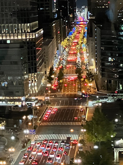 | 淀屋橋スカイテラスからの御堂筋の景色もきれい☆堂島浜タワー16階からの夜景と見比べるのも楽しいですよ~☆
