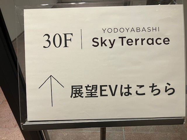 を上がると、スカイテラス行のエレベーターの案内があります。