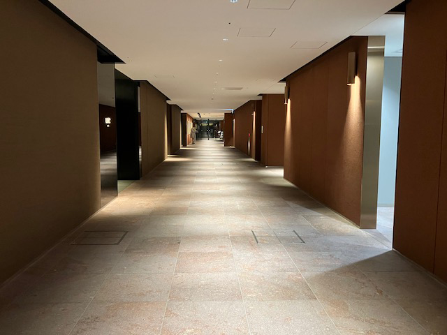 | エレベーターを降りたビル内は、通路が広くて間接照明になっていて、素敵♪