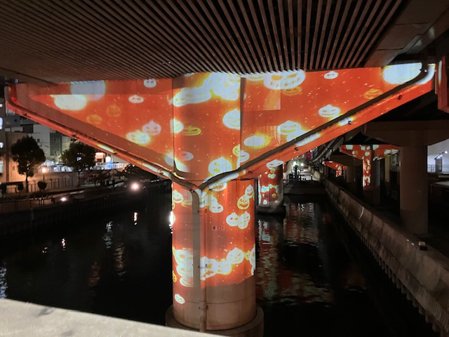 | 他では決して体験できない東横堀川の新たな一面に、プロジェクションマッピングが展開されます。