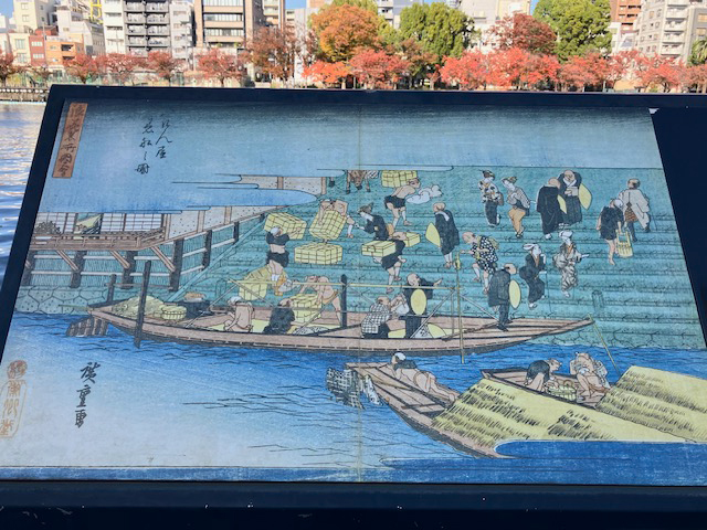 | 八軒家浜の歴史は、天神橋と天満橋の間において平安時代までには外港が成立していたそうで、四天王寺、住吉大社、高野山や熊野三山への参詣道である熊野街道の起点として、海陸交通要用地として栄えたそうです。江戸時代には、船宿などが8軒並んだことから八軒家浜と呼ばれることになり、伏見と大阪を結ぶ三十石船のターミナルとなるほど、淀川舟運の要として栄えたそうです。このころの八軒家浜の様子は、歌川広重「浪速名所図会、八けん屋着船の図」など多くの文芸・美術作品に描かれている、歴史ある水都大阪の船着き場だったのですね。