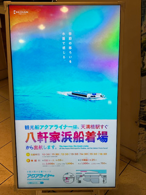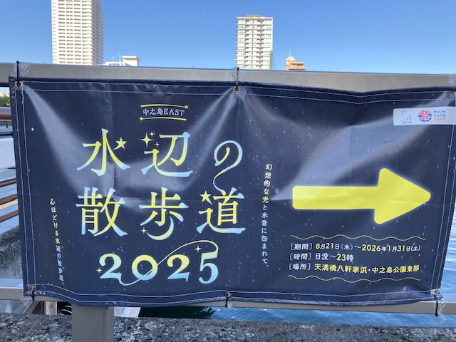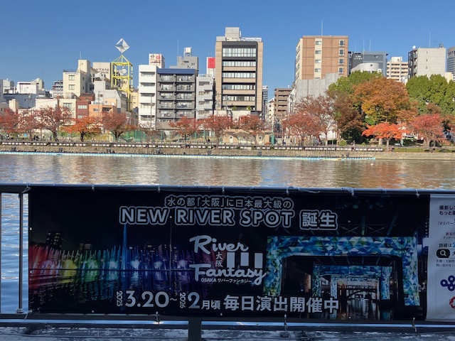 | 次は、この度、水の都大阪に日本最大級のリバースポット「OSAKAリバーファンタジー」が誕生しまして、ポスターを見かけられた方もいらっしゃるかと思いますが、大阪・関西万博開催を記念して、水と光のシンボルである中之島、水の回廊である大阪市中心部とベイエリアを結ぶ「水と光の東西軸」の3ヶ所で船上や川べりから楽しめる、ウォ-ターショーやプロジェクションマッピングなど、水と光を活かした水都大阪「OSAKAリバーファンタジー」を早速、見学に行ってきました☆