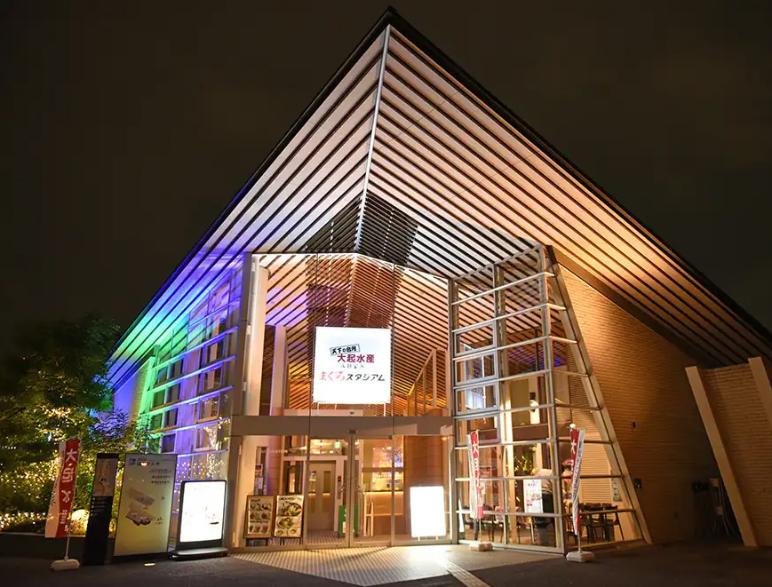 | 八軒家浜付近は飲食店がいっぱいありますが、大川の景色を眺めながら気軽に食事のできるお店を2店舗ご紹介しますね♪まずは、「天下の台所 大起水産 八軒家浜 まぐろスタジアム」です。お客さんの多い、人気店です。