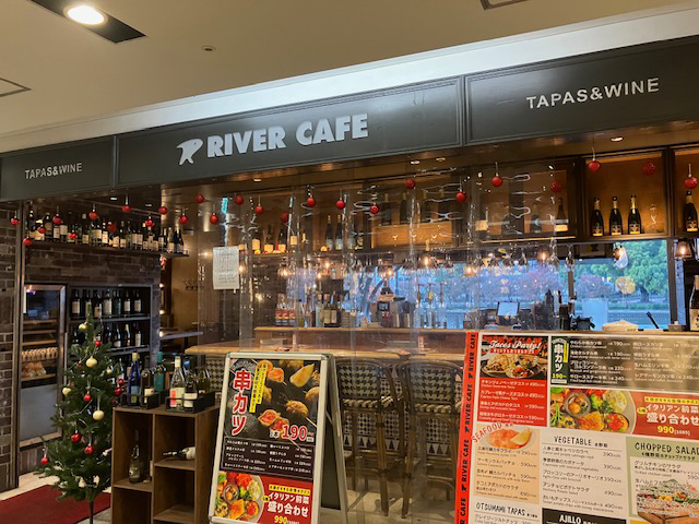 | リバーカフェでは、ソムリエさん厳選ワインや、400度の石窯で焼き上げるピザ、超粗引牛100%の名物ハンバーグステーキに小皿から楽しめるイタリアンのお店で、一人でもふらりと入れるお店です♪