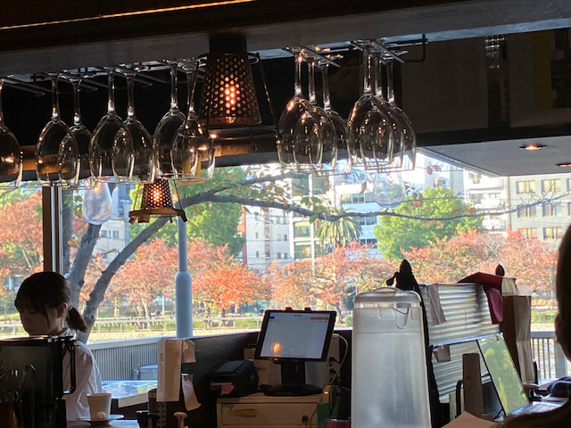 | リバーカフェ店内からは、どのお席からも、大川と紅葉の美しい景色が見られます♪