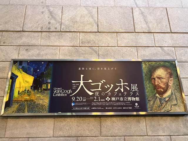 | 神戸に来た目的は、只今、阪神淡路大震災から30年の取り組みとして神戸市立博物館では「大ゴッホ展、夜のカフェテラス」展が開催されていまして、世界的に有名なオランダのクレラーミュラー美術館所蔵のゴッホの優品約60点など展示を見学するためです。